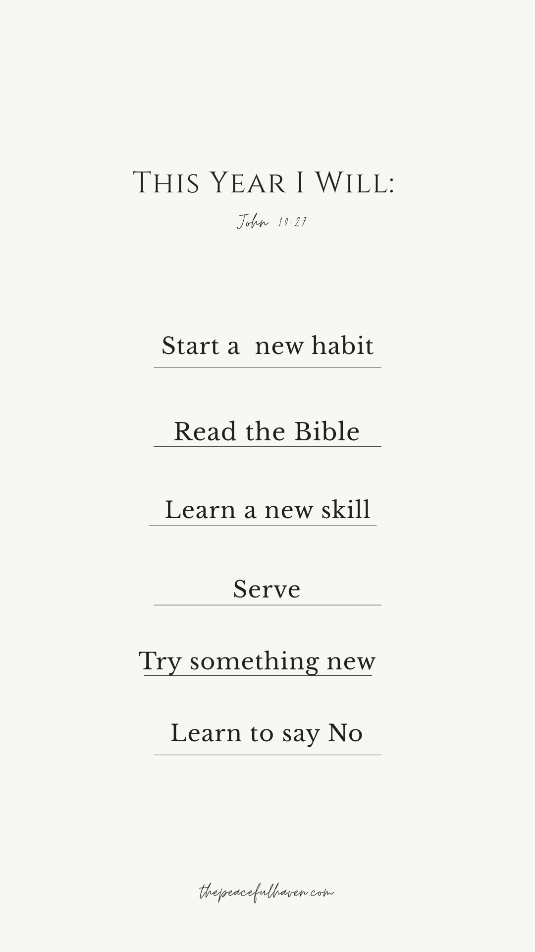 Proverbs 29:18 states that “Where there is no vision, the people perish; but he that keepeth the law, happy is he”.  Starting this blog was a result of one simple New Year’s Resolution.  I also want to thank each one of you for your support!  You are amazing, and I treasure each of you. I have enjoyed getting to know you due to our interaction here at The Peaceful Haven. I made this New Year’s Resolutions FREE Printable.